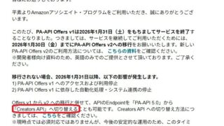 ブログ運営関係 「PA-API v1 サービス終了のお知らせ」って対処する必要あるの?Creators APIに変えよう。