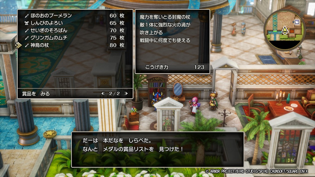 ちいさなメダルを集めなくてもクリアできるし、何なら「ふしぎなボレロ」の方を装備して「しんぴのよろい」も「グリンガムのムチ」も使ってないので、「神鳥の杖」がほしいなら集めたらいいかなという感じですね。