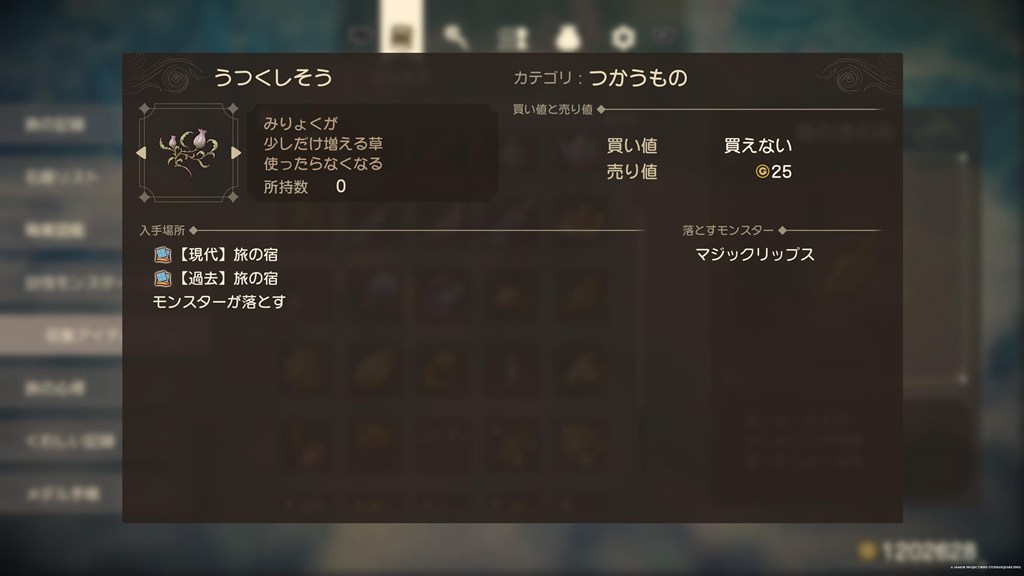 現代のメザレ周辺でスライム系をかるか、現代のサンゴの洞くつ周辺で「アンクルホーン」をかるかの2択になると思います。