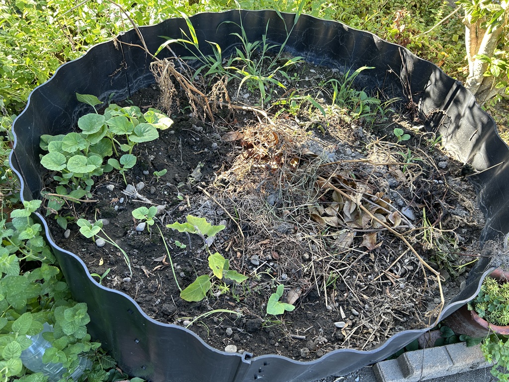 60cmの高さ分、土を運んだり、落ち葉を入れたり、枯れ草を入れたりするのは非常に大変で、ここまでするのに3時間ぐらいかかりました。