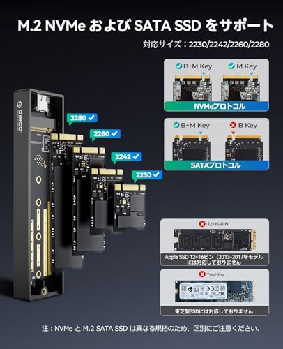 M.2 SSD ケースは色んなものがあるので迷ってしまいますが、使用したSSDタイプのものが使用できるものを選びましょう。