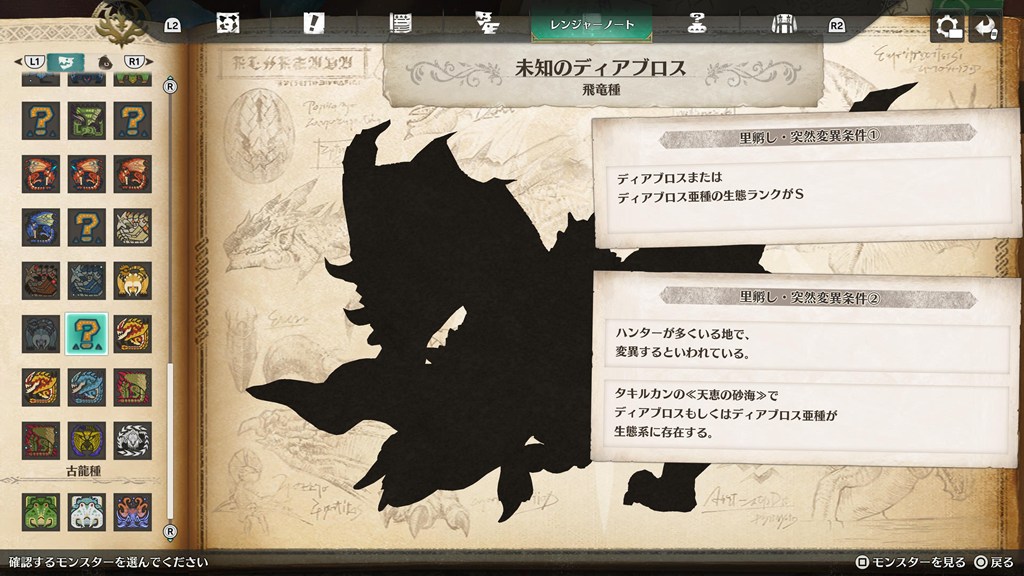 タキルカン「天恵の砂海」でディアブロスもしくはディアブロス亜種が生態系に存在する。
