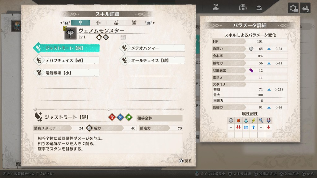 「ジャストミート【鈍】」と「通常攻撃」のみ使用です。