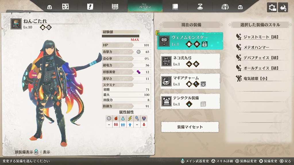 使用するのは、ヴェノムモンスター(ゲリョスハンマー)とテンタクル装備(ネロミェール)です。