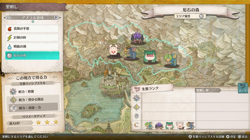 4つのキャンプを解放すると、最大HPに補正がかかる(星2→星3になる)ようです。