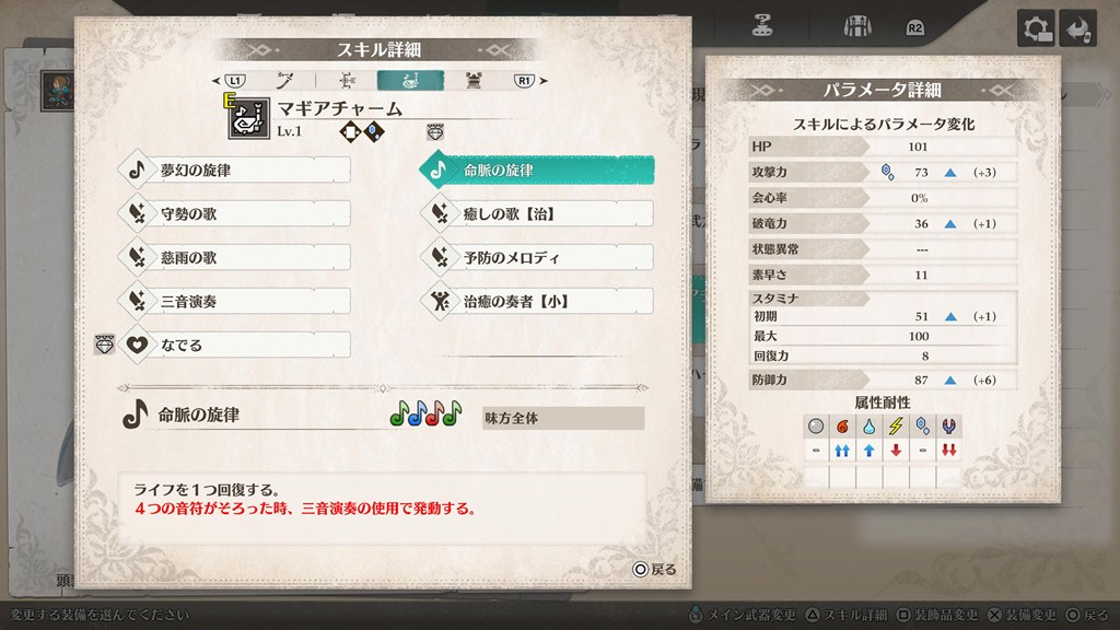 「命脈の旋律」が常に発動できる状態になるように、最優先で音符を溜めていきます。