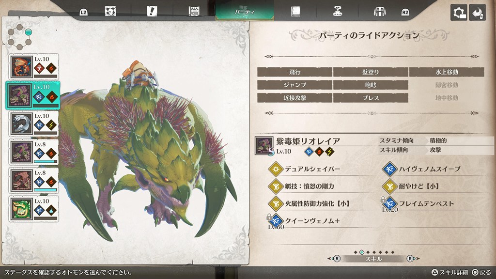 できるだけライド出来る状態を維持しておき、もしもの時の回復手段やネルスキュラの全体攻撃を耐えるときに使いましょう。