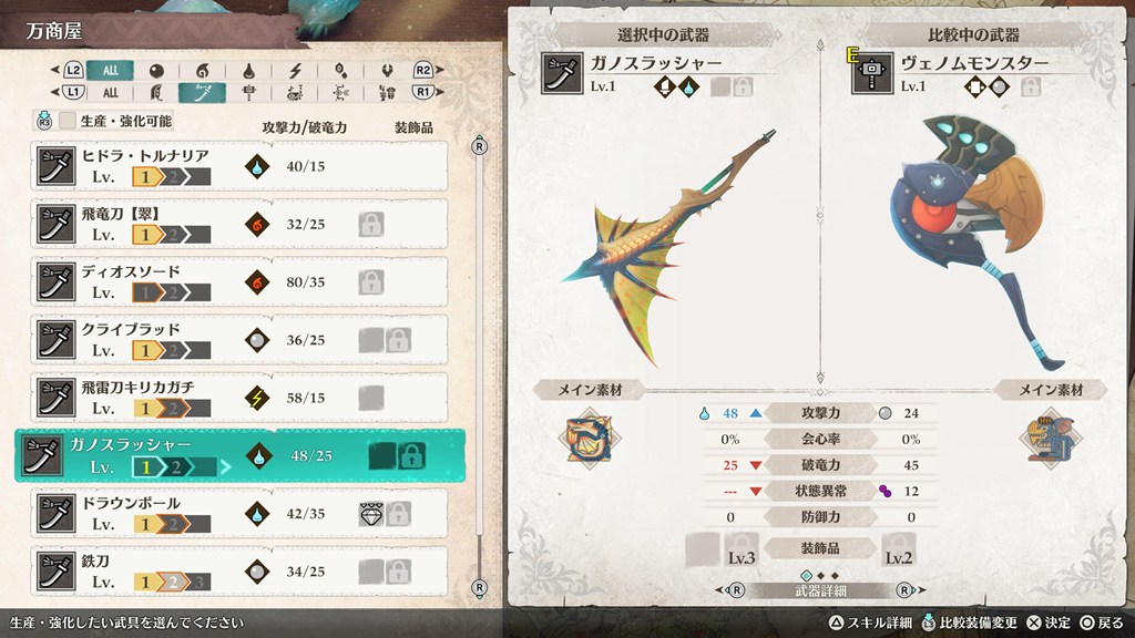 ガノトトス装備は防具も強く、武器も強いです。