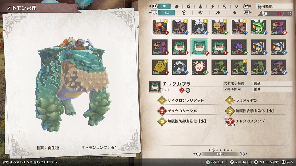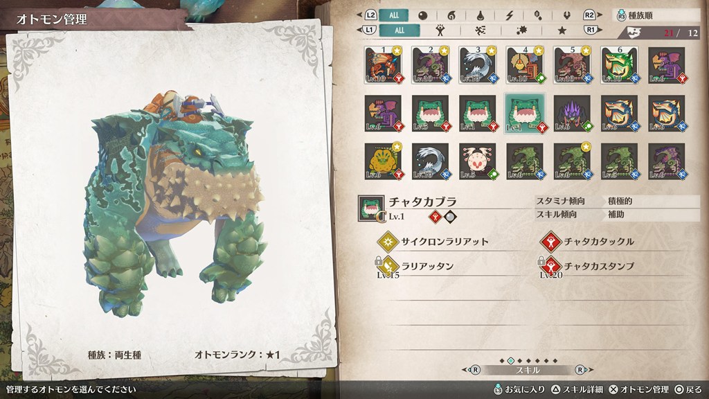 ラリアッタンはレベル15じゃないと覚えられないはずなのですが、上のチャタカブラは覚えています。