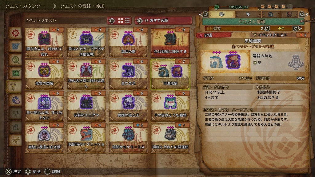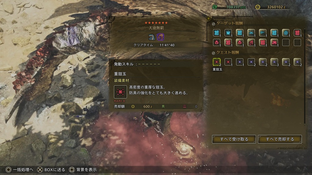 イベントクエスト「天滄無窮(てんそうむきゅう)」では、防具の強化に必要な重鎧玉が入手できます。