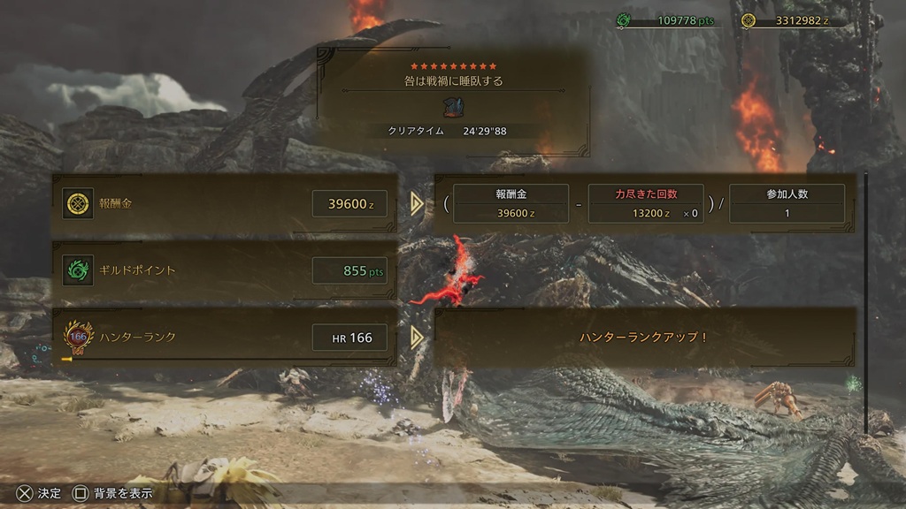 1人でクリアしようとすると、最終エリアでの龍属性の数値が足りず、「気体状態中のブレス」を抑制することができず力尽きてしまうので、よっぽど上手な人以外は、サポートハンターを3人呼んで4人体制で討伐するようにしましょう。