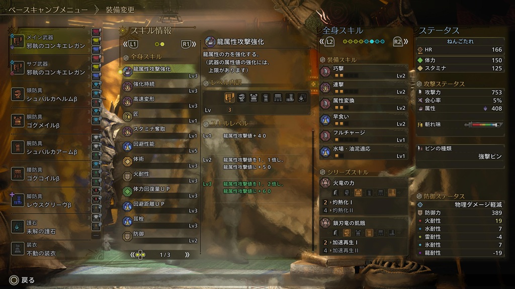 炎属性武器は最初のエリアの途中までしか使用しませんが、龍属性武器は必須になります。