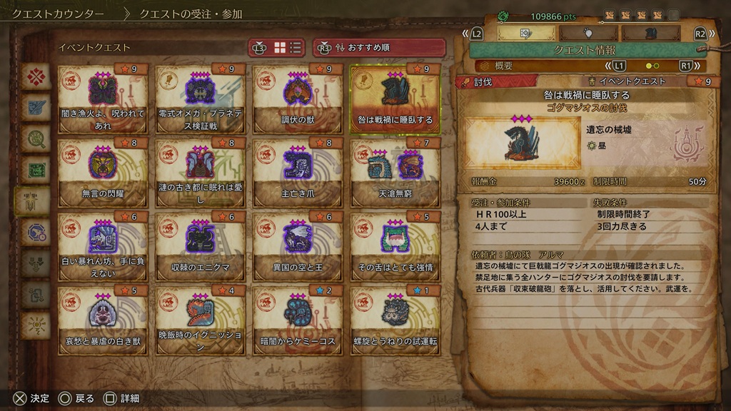 ゴグマジオスは、HRを100まで上げないと登場しないのでそこまでHRを上げましょう。