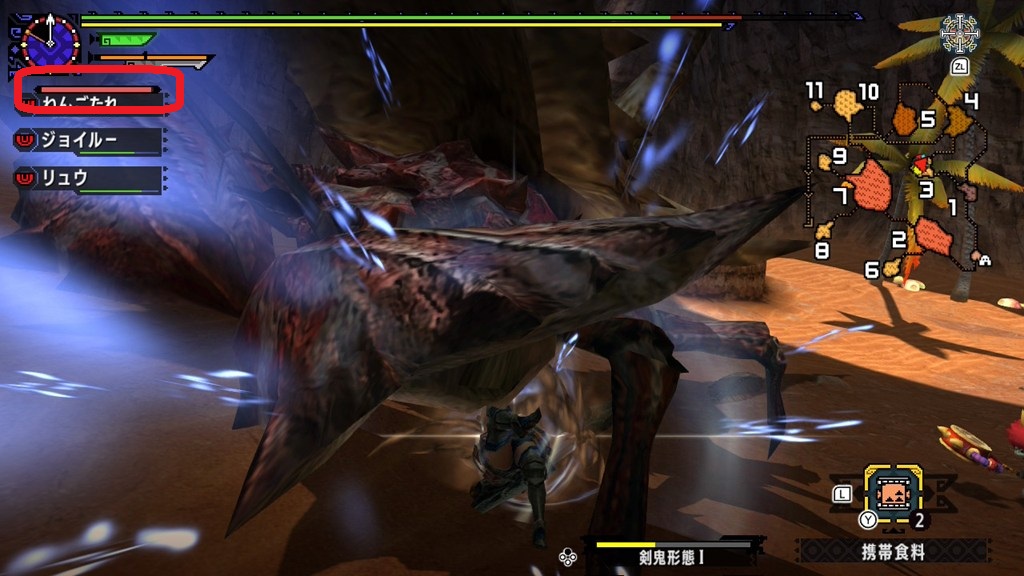 スラッシュゲージを大幅に消費するため、剣鬼形態の狩技を使用しておくといいです。