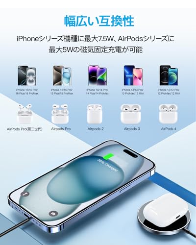 iPhone14に買い替えたのですが、それまで使っていたワイヤレス充電器の充電範囲が狭く、充電できないことが多かったので、充電時にズレないようにmagsafe充電器を購入することにしました。