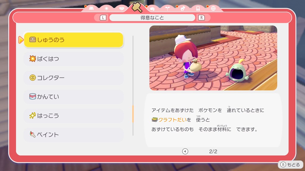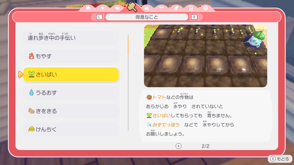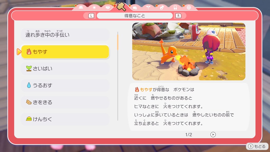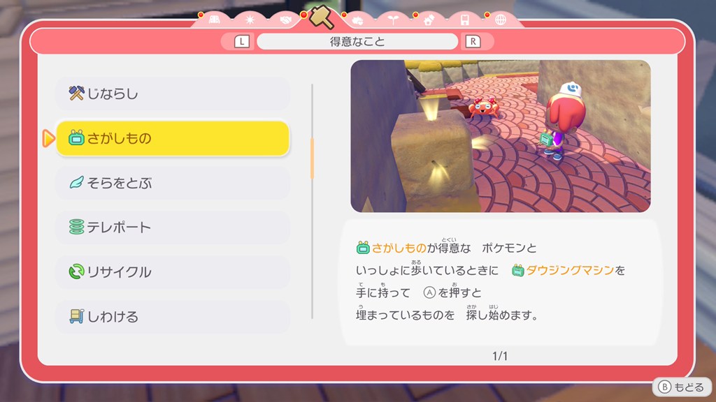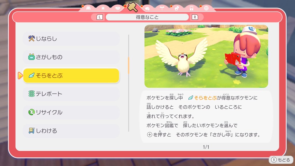 ポケモンの得意なことの効果については、メニューの「くらしのヒント」で確認できます。