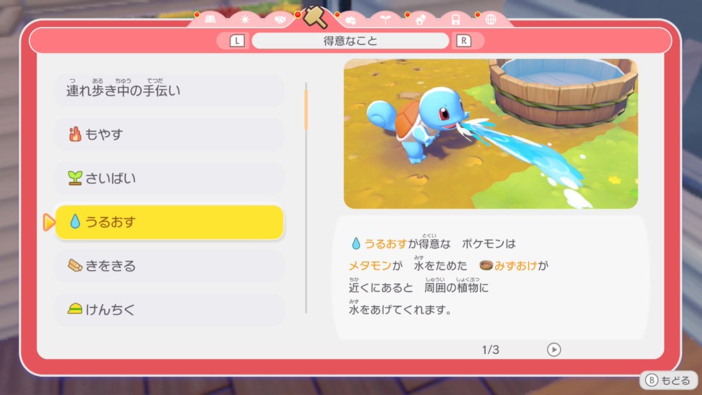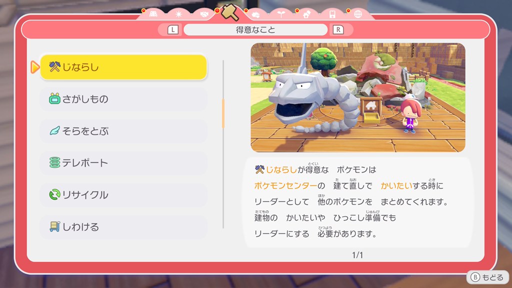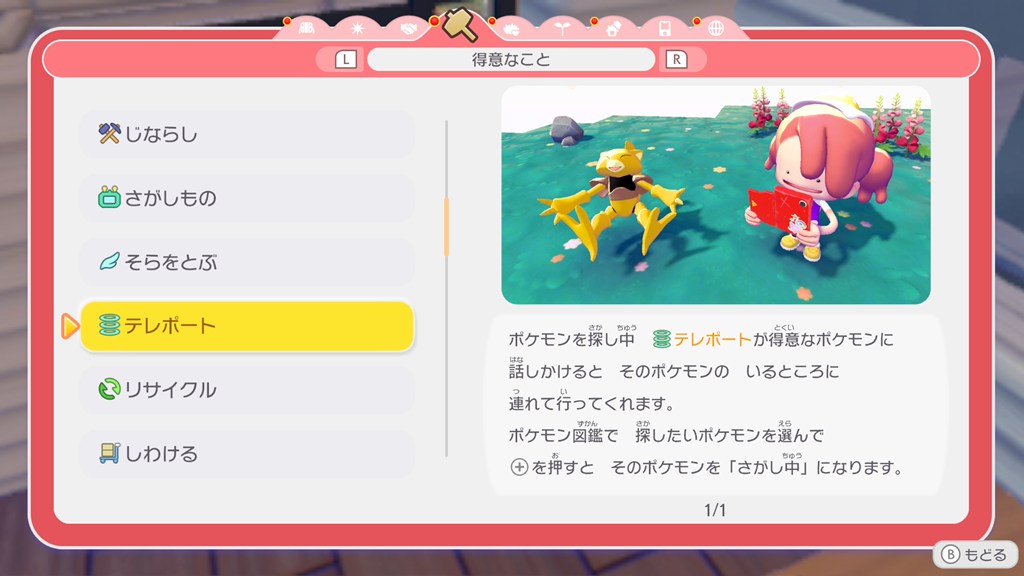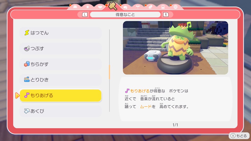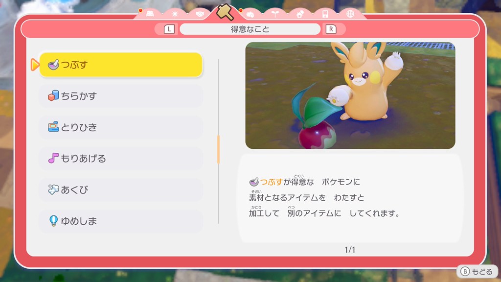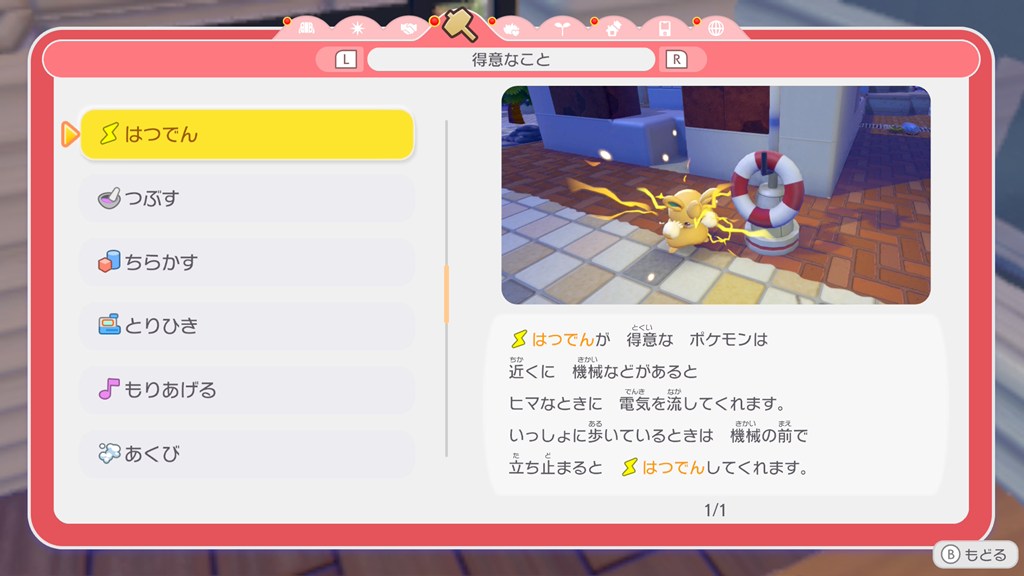 ポケモンの得意なことの効果については、メニューの「くらしのヒント」で確認できます。