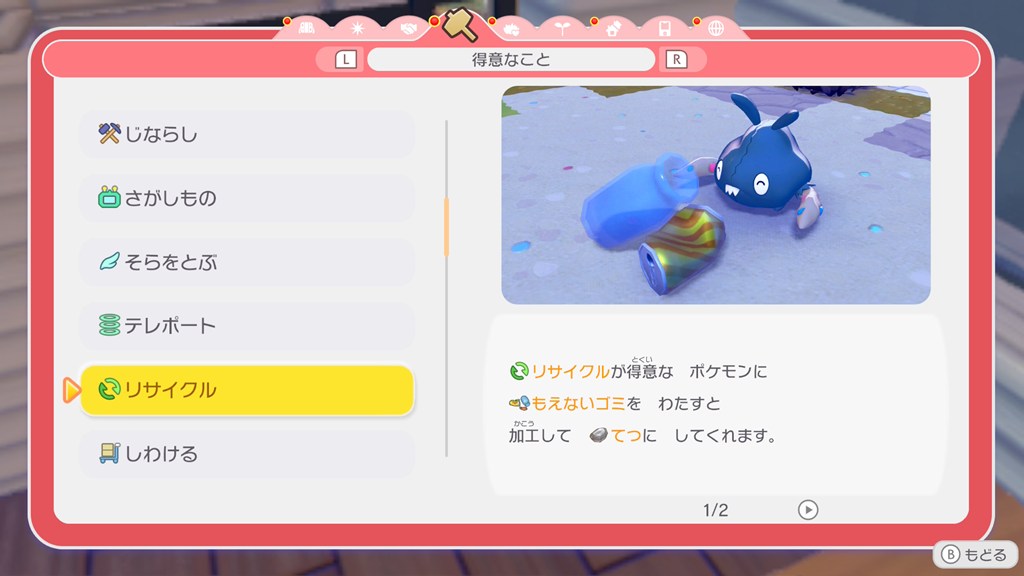 「もえないゴミ」を「てつ」に加工してくれるポケモンと、「かみのゴミ」を「かみ」に加工してくれるポケモンがいます。