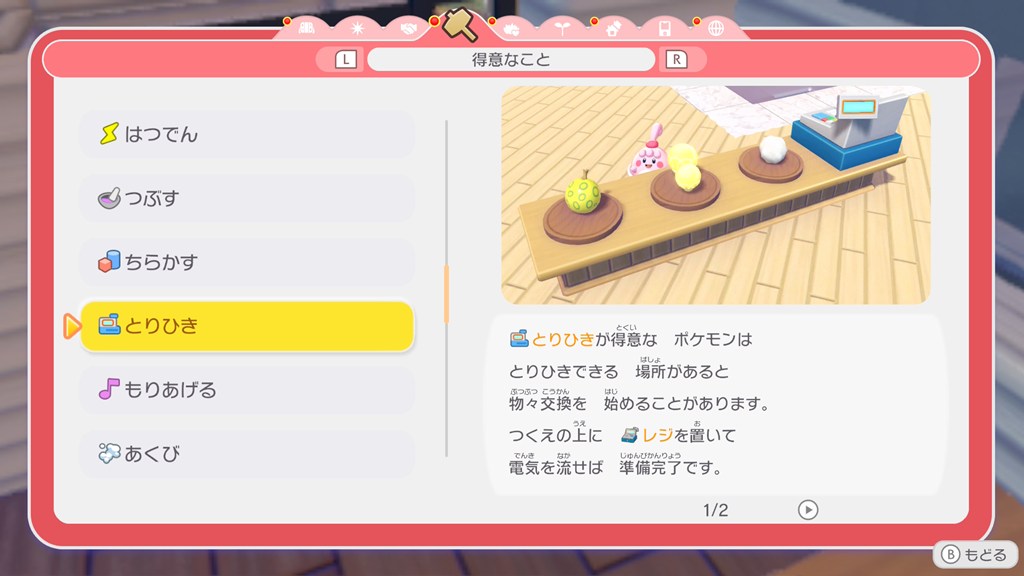 また、ポケモンセンターを再生したときに、ポケモンセンター内で「とりひき」をはじめるので、店員さんにしたいポケモンは近くに住処を作っておくといいかもしれません。