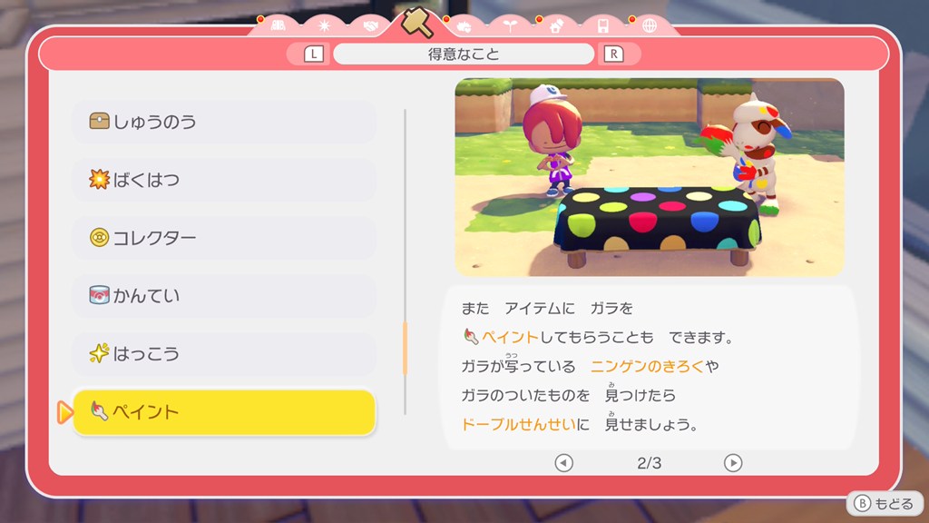 ※色を変えるのは、ドーブル先生のお願いをクリアすることで自分で変えられるようになります。