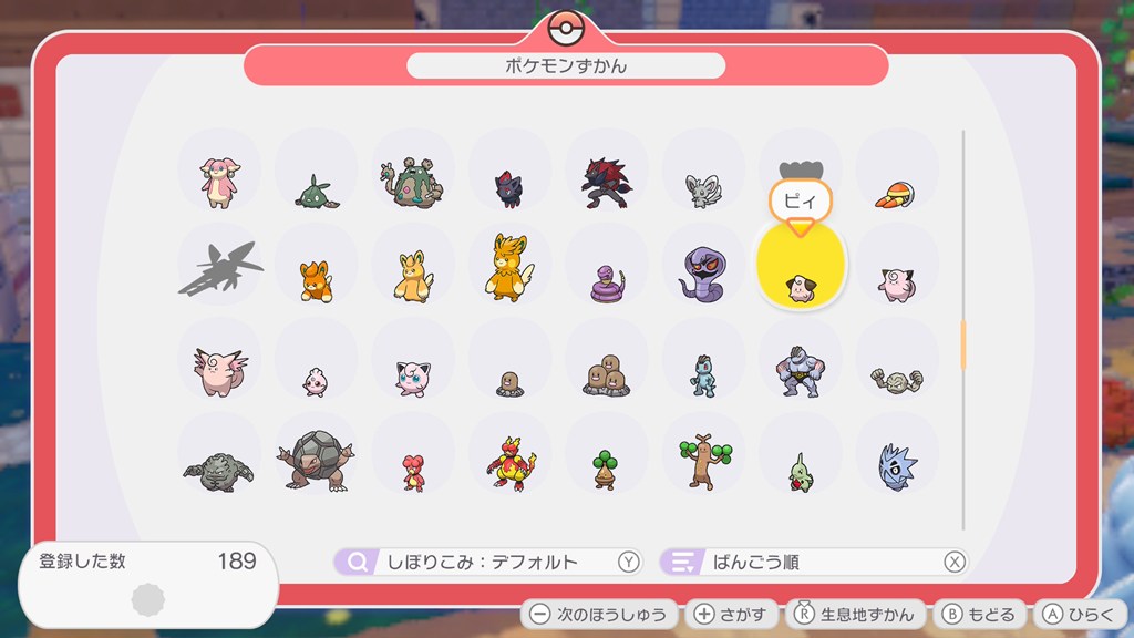 ポケモン図鑑から探したいポケモンを選択し「+」を押すと「さがし中」になるので、そのときに話しかけましょう。