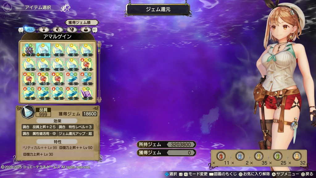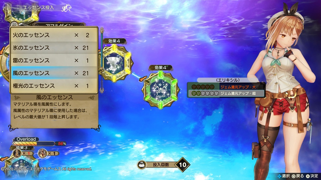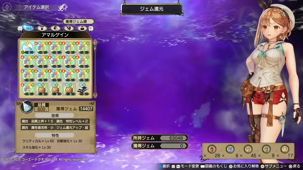 アマルゲインを作成するときに、「風のエッセンス」で「ジェム還元アップ・超」にしておき、そこを優先的に上げるようにしましょう。