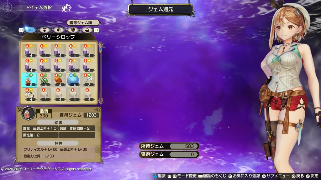 最初のジェムの稼ぎ方は「エルツ糖」を使って、「ベリーシロップ」を量産しましょう。