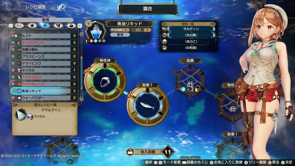 2つ目のエリアをクリアしたら、スキルツリーで「品質上限の解放「600」」を解放できるようになり、「アマルゲイン」を作成できます。