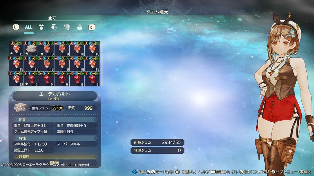 | 超純度 | ジェム還元でエられるジェムの量が大幅に増加する |