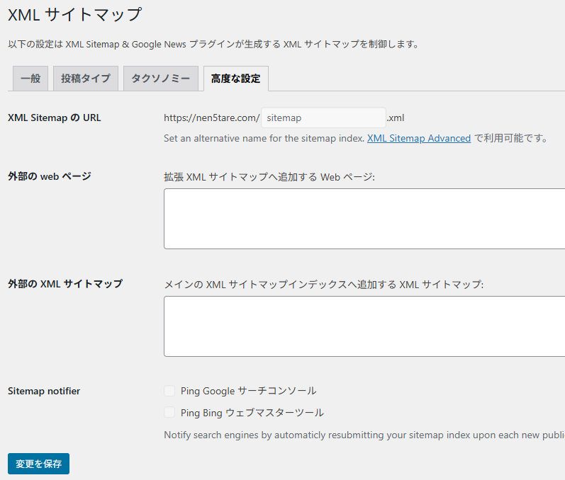よくわからないまま、「XML Sitemap & Google News」で調べた時に出てきたサイトを参考に設定をしていましたが、それではダメなようでした。